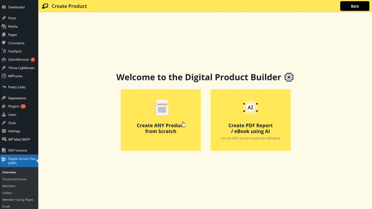 Create your courses, challenges, PDF report, eBook, etc. in just 2 minutes using the POWER of DAP's AI Add-on!